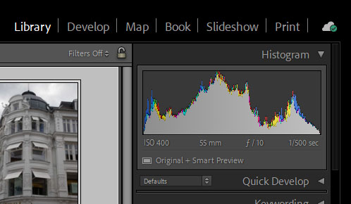 Na pewno spotkałeś się z histogramem choćby w swojej lustrzance cyfrowej. A teraz  zaczynasz przygodę z edycją zdjęć i histogram powraca. W lightroom Classic wykres wyświetla się w dwóch modułach : Library i Develop.