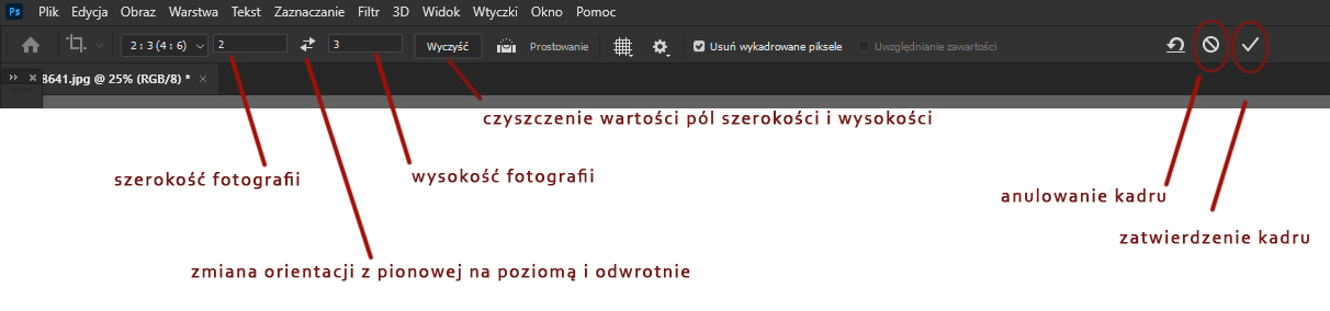 Photoshop Kadrowanie - Pasek Opcji narzędzia
